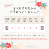 年末年始休業日のお知らせ